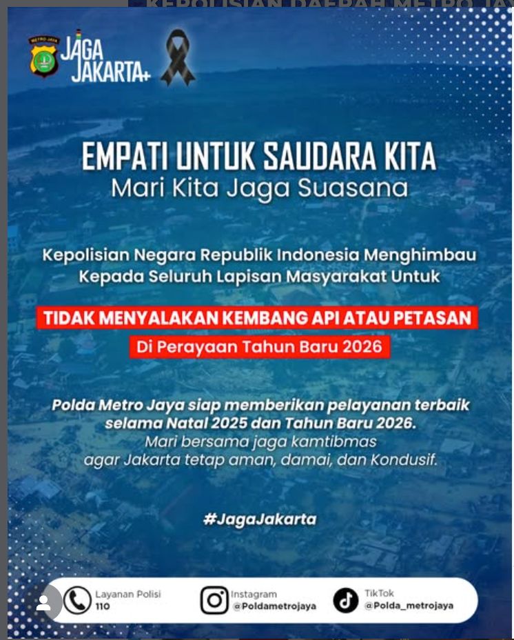 Empati Bencana Sumatera, Polda Metro Jaya Tutup Ruang Pesta Kembang Api saat Malam Tahun Baru